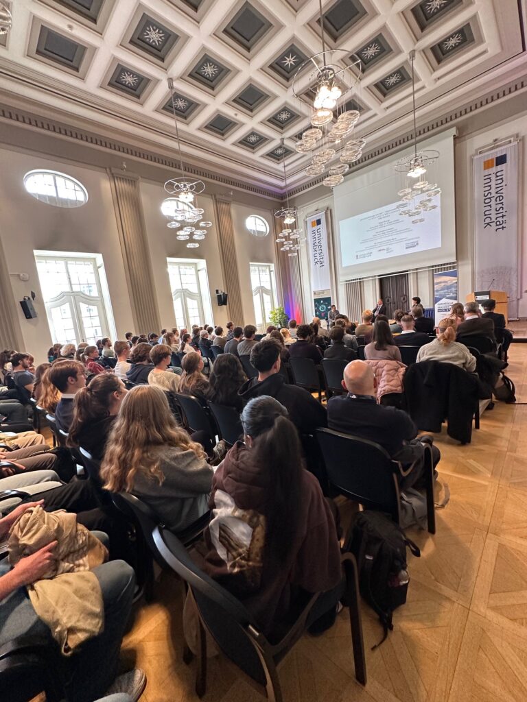Unter der Überschrift „Diplomatie grenzenlos?“ hat sich gestern der Deutsche Botschafter in Österreich, Vito Cecere, den Fragen von knapp 100 interessierten Gästen gestellt. Eingeladen hatte die Europäische Akademie Inntal zusammen mit dem Institut Medien, Gesellschaft und Kommunikation der Universität Innsbruck sowie dem Club Alpbach Tirol. In der Aula der Uni Innsbruck konnten Bürger:innen, Akademie-Mitglieder und Studierende dem erfahrenen Diplomaten zahlreiche Fragen zu diplomatischen Strategien, politischer Debattenkultur und auch aktuellen Europa- und weltpolitischen Themen stellen. Die Begrüßung und Einführung übernahm der Vizerektor der Universität Innsbruck Prof. Gregor Weihs. Es moderierten Dr. Natascha Zeitel-Bank, Dozentin der Universität Innsbruck und Co-Gründerin der Europäischen Akademie Inntal und Hannes Frei vom Club Alpbach Tirol.